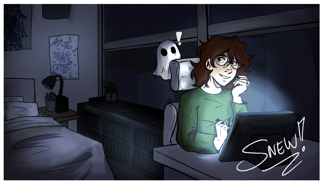 Bailey “Snew” Carlson is a comic artist, illustrator, and storyboarder from Michigan. They attended Savannah College of Art and Design while majoring in Sequential Art and minoring in Storyboarding. They love making comics and creating stories to inspire and impact people around the world with their art. She loves music, her two white labs Toby and Odie, and ice coffee.